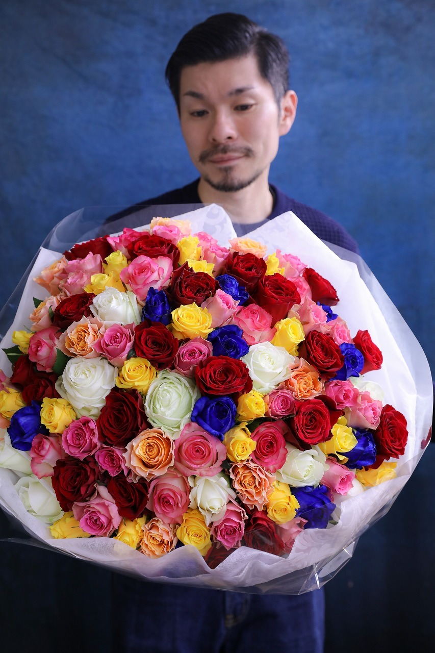 - テレビ朝日「じゅん散歩」出演。タレント・高田純次さんに100本のバラを持っていただきました。